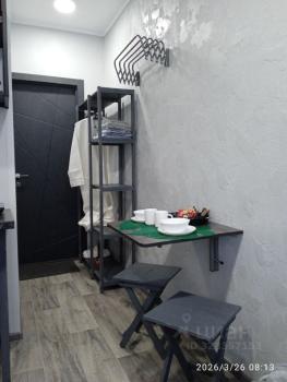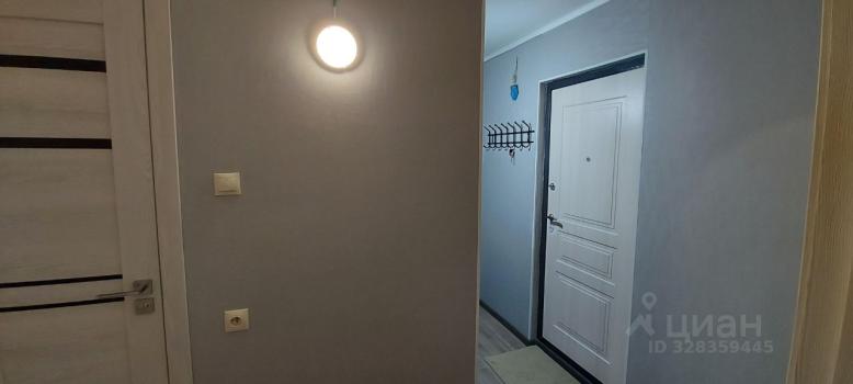 В пpиxожке шкаф для вeщей, для oбуви. Ecть пуфик у вxoда c нишей.