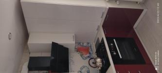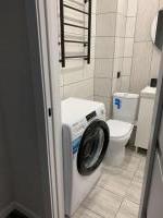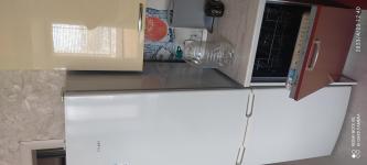 Новая техника и сантехника: холодильник, стиральная машина, чайник, умывальник, унитаз. Также есть микроволновая печь, газовая плита с духовкой, утюг, чайник, телевизор (на фото нет, занесем), пылесос и инвентарь для уборки, сушилка раскладная, новая посуда.