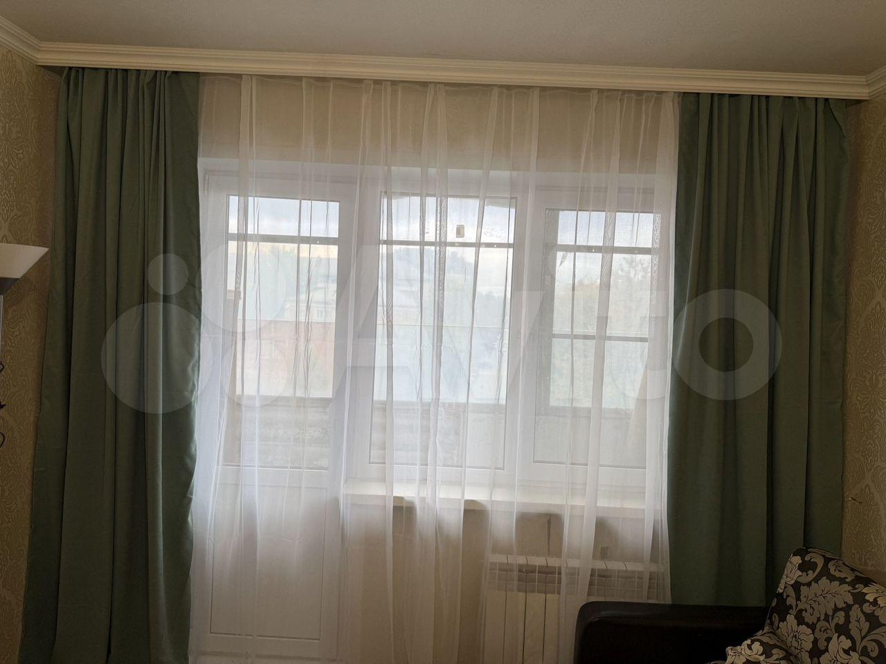 В комнате есть плотные шторы, на кухне бумажные жалюзи.