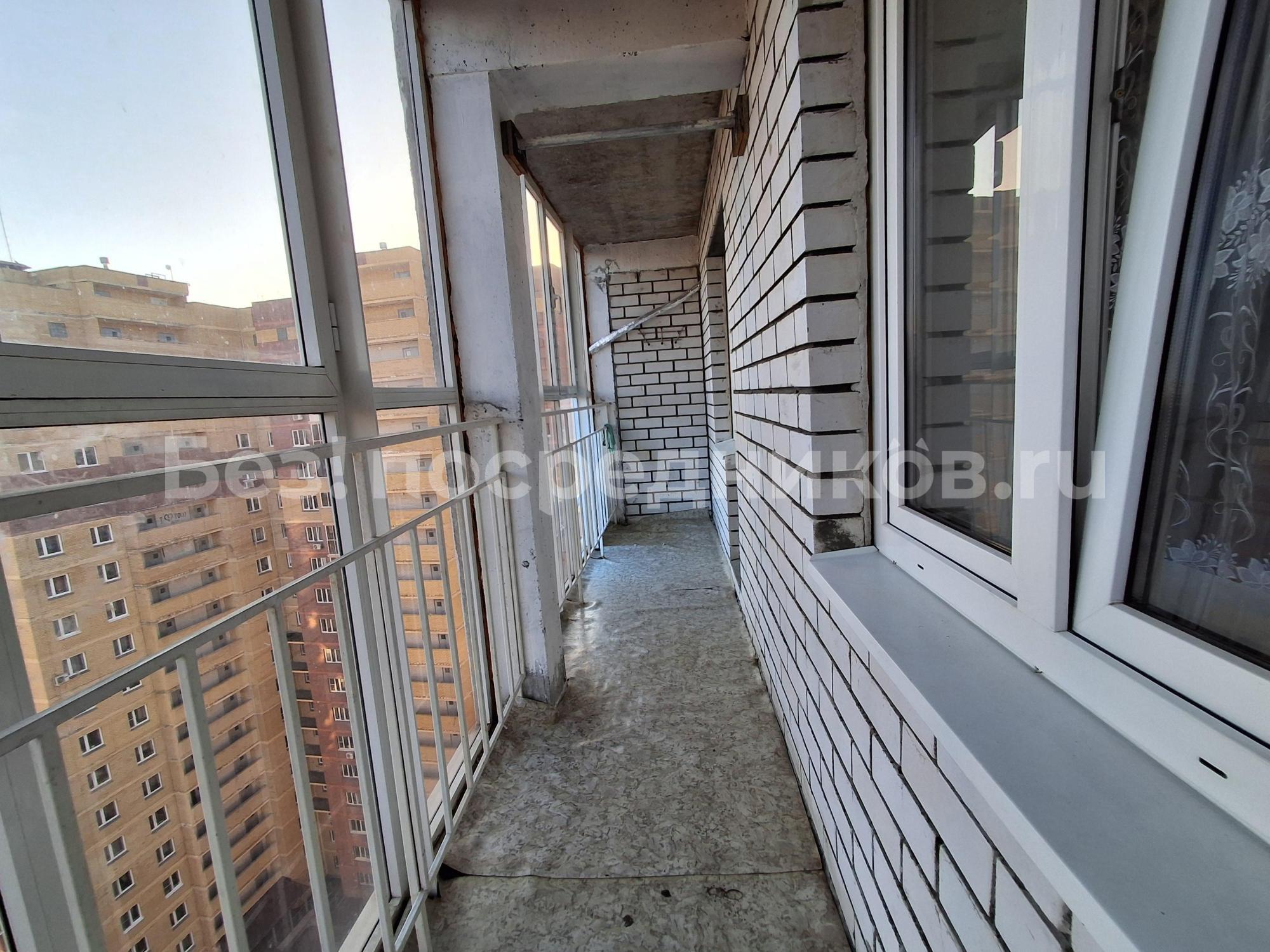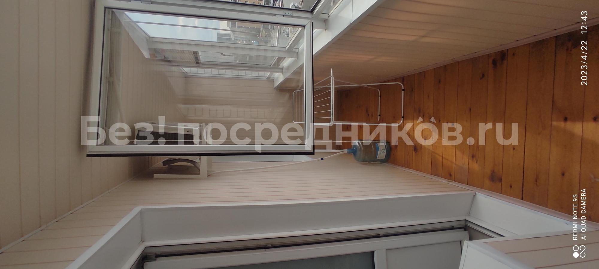 Из комнаты - выход на 4м застеклённый и обшитый вагонкой балкон со шкафами.