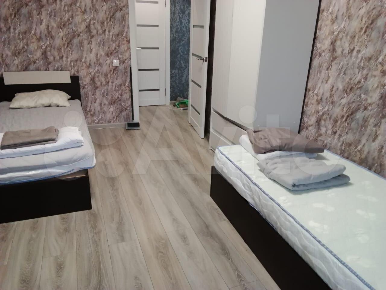СОБСТВЕННИК. риэлторов просьба не беспокоить. квартира с 2 отдельными комнатами. в каждой комнате 2 односпальные кровати , шкаф для вещей. С/у обычный, совмещённый . есть интернет. по договоренности могу двухспальную кровать установить