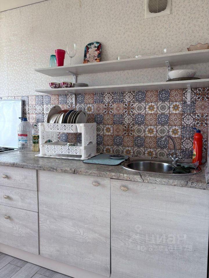 На кухне Г-образный гарнитур. Эл.плита на 3 комфорки. Большая раковина, есть вытяжка с подсветкой, свч и чайник новые. Также подсветка в гарнитуре есть, включается по жесту и регулируемая яркость. Мягкие стулья со спинкой. На фото их нет, т.к. были куплены после фотосессии.