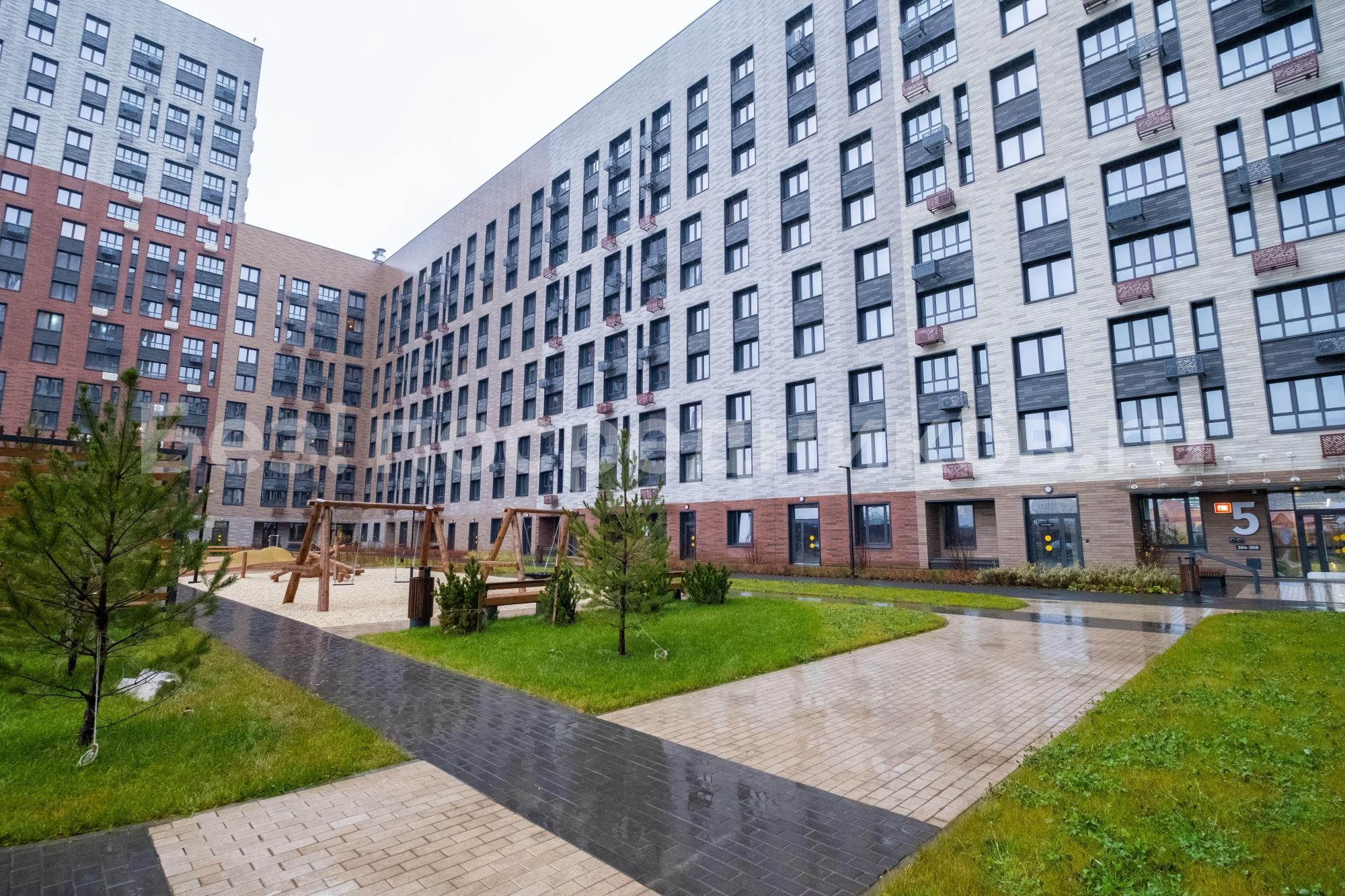 Во дворе дома спортивная и детская площадки, магазин "Пятёрочка", пункты выдачи WB и Ozon.