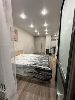 Современный хороший ремонт. Пространство 22 м² удобно зонировано, есть компактная кухонная зона прямо в комнате — формат «заезжай и живи».