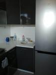 Кухня оборудована всем необходимым: холодильник, плита и стиральная машина.