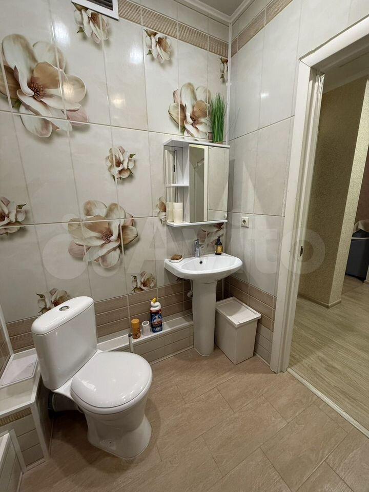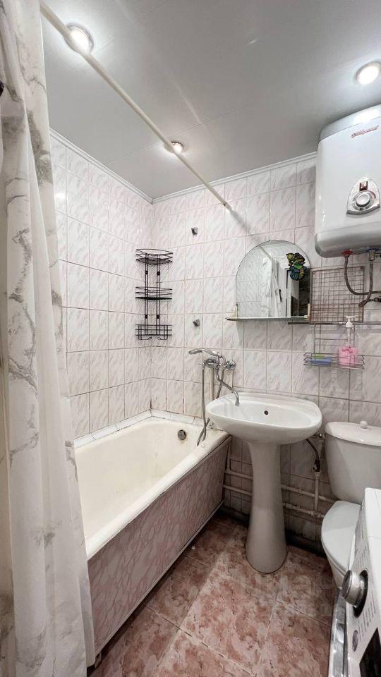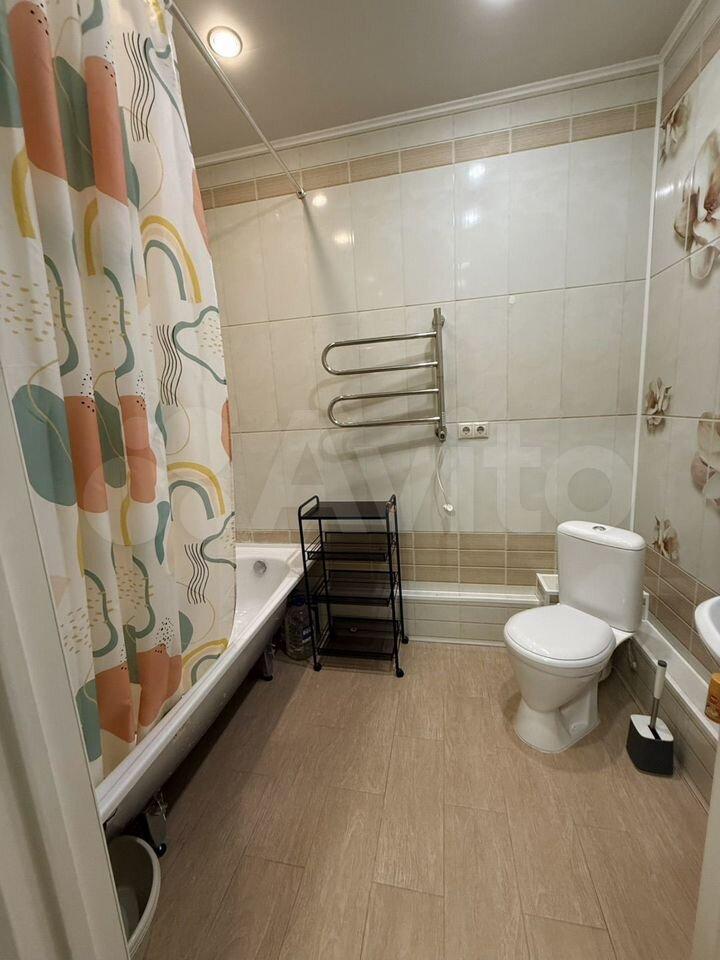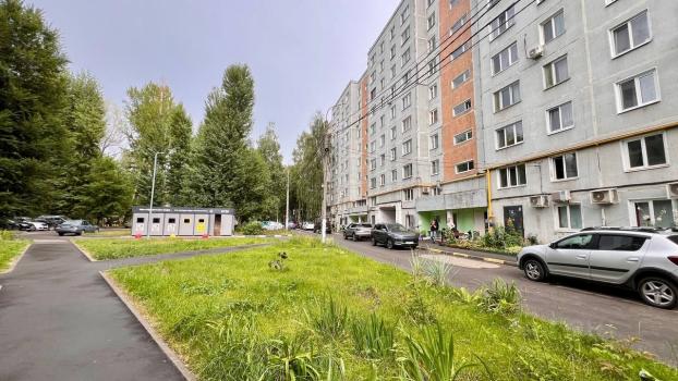 В квартире установлены шкафы и телевизор. Санузел совмещенный, выполнен в светлых тонах. Из окон открывается вид на ухоженный двор с детской и спортивной площадками. Для автомобилей предусмотрена подземная парковка.