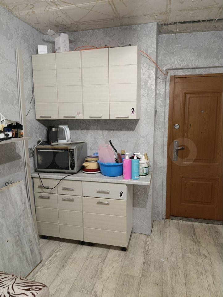 Жильцу предоставляется из мебели: кухонные шкафчики, диван раскладной, шкаф, cтол, кресло, стеллаж.