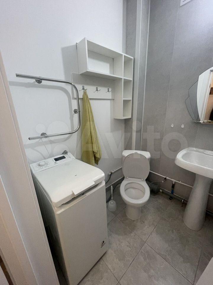Санузел совмещенный, оснащен современной сантехникой и стиральной машиной. Из дополнительных удобств — балкон с остеклением, где можно наслаждаться вечерним видом.