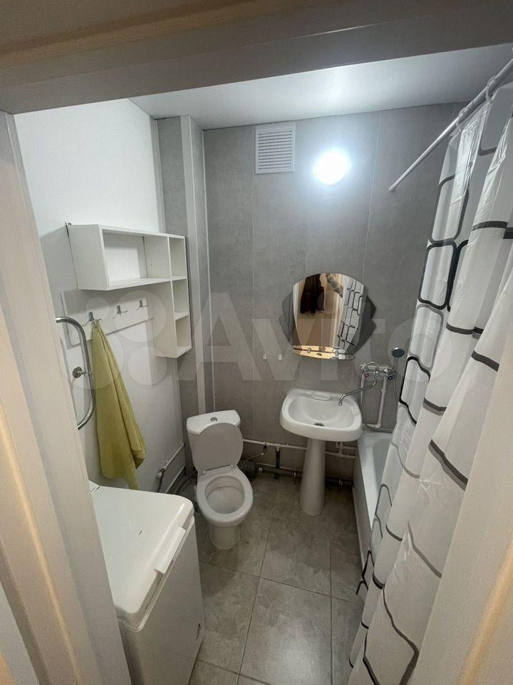 Санузел совмещённый, оборудован душевой кабиной и стиральной машиной. В прихожей предусмотрены вместительные шкафы для хранения вещей.
