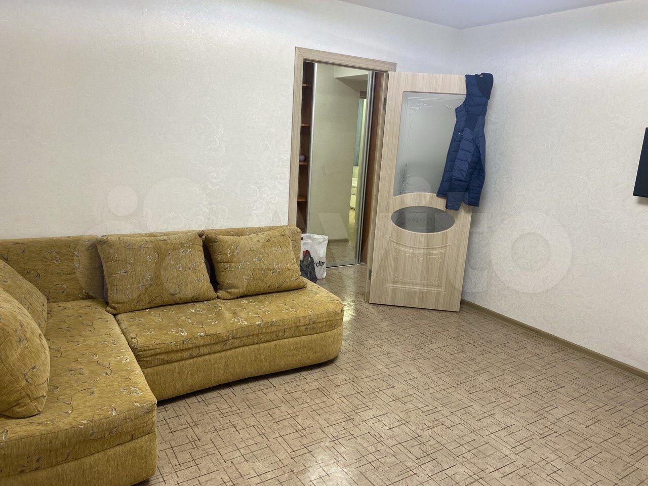В квартире есть все необходимое для проживания: кухонный гарнитур, холодильник, микроволновка, стиральная машина, ТВ, шкаф купе, диван. Все представлено на фото.