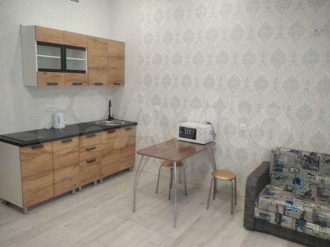 • Студия с диван-кроватью и кухонным гарнитуром.