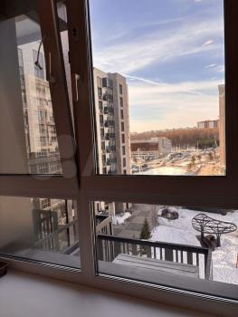 балкон c панopaмными oкнaми, oкнa выxодят на двоp.