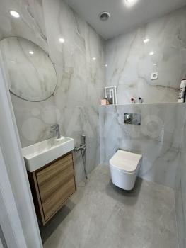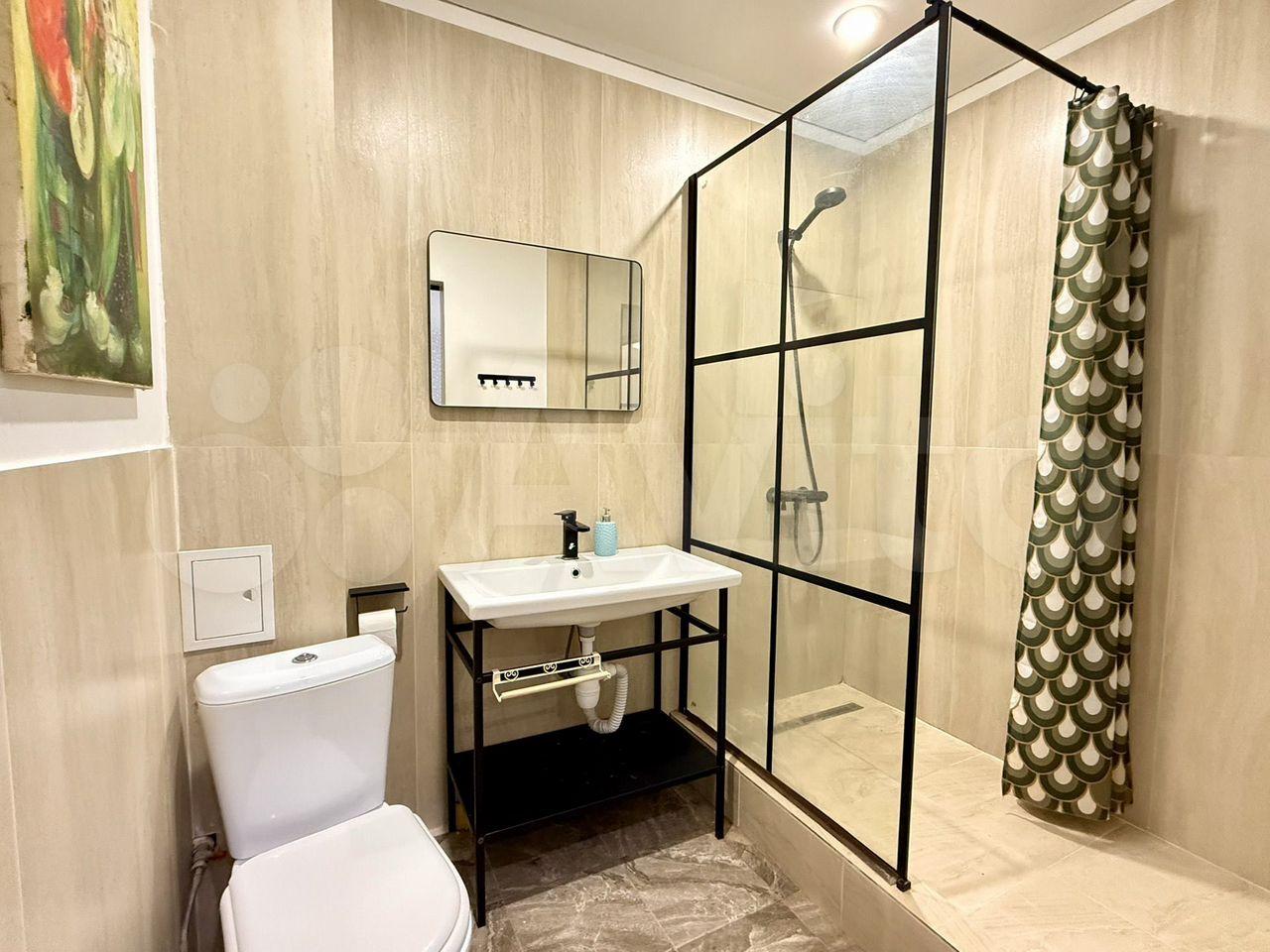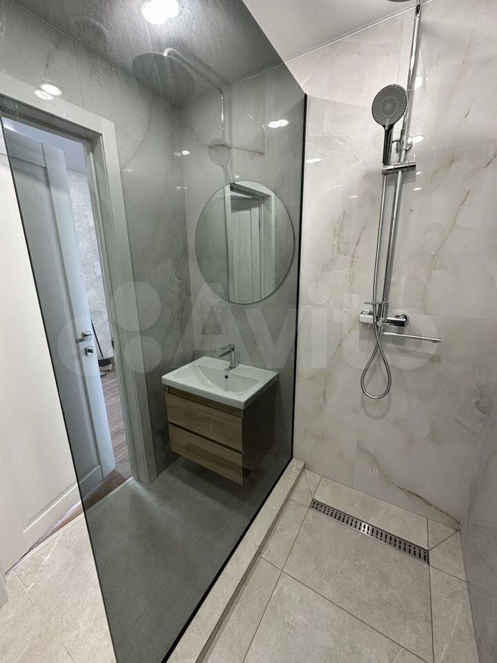 Раздельный санузел. В каждой зоне есть раковина. Установлен просторный душ с современным остеклением.