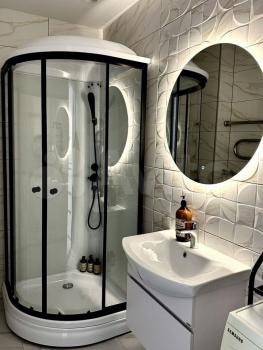 Ванная комната совмещённая, оформлена в светлых тонах и оборудована современной сантехникой с гигееническим душем установлена стиральная машина. Теплые полы в коридоре и ванной. Есть вайфай.