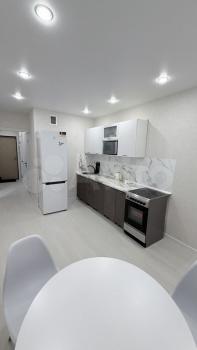 • Светлую и теплую квартиру со всей требующейся для комфортного проживания техникой: кондиционер в спальнях, шторы блэкаут, посудомоечная машина, микроволновка, чайник, холодильник, стиральная машина, тв 55 дюймов, посуда, 2 рабочих места.
