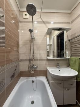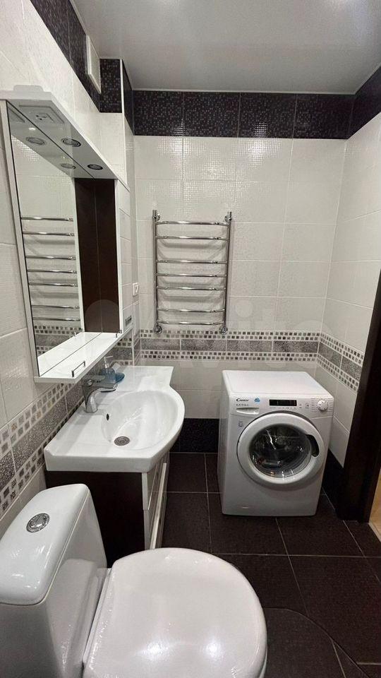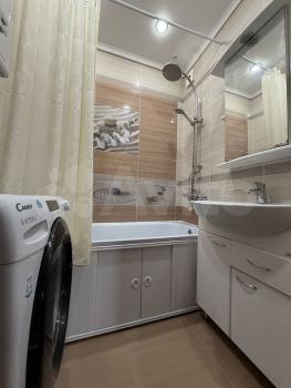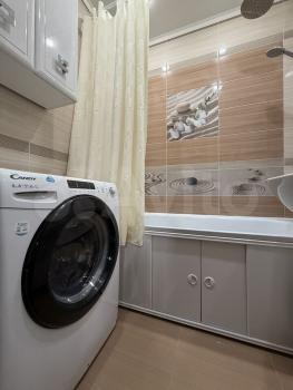 В квартире сделан косметический ремонт, поэтому она выглядит свежо и аккуратно. В наличии вся необходимая мебель для комфортного проживания: обустроенная кухня и обставленная комната. Из техники есть холодильник, стиральная машина и телевизор. Ванная комната оборудована ванной, совмещенный санузел удобен и функционален.