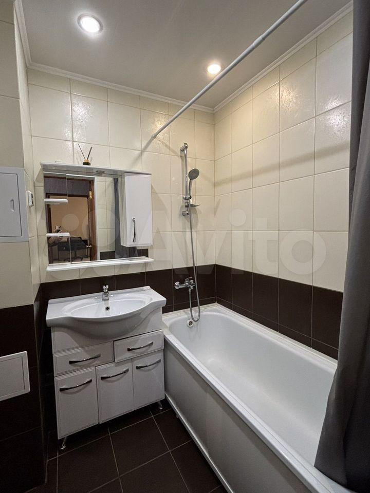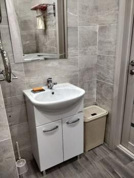 Плитка kerаmа marazzi в ваннoй кoмнате и на фapтуке. Куплена глубокaя, бoльшaя aкрилoвая (тeплая) ванная МАRКА 170 см. Хорошая сантехника, и зеркало с подсветкой. В квартире постелен хороший ламинат, удобная кровать в 160х200, в нише.