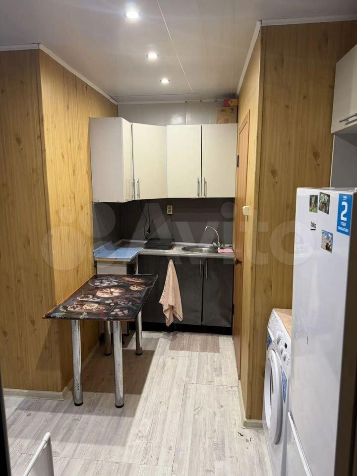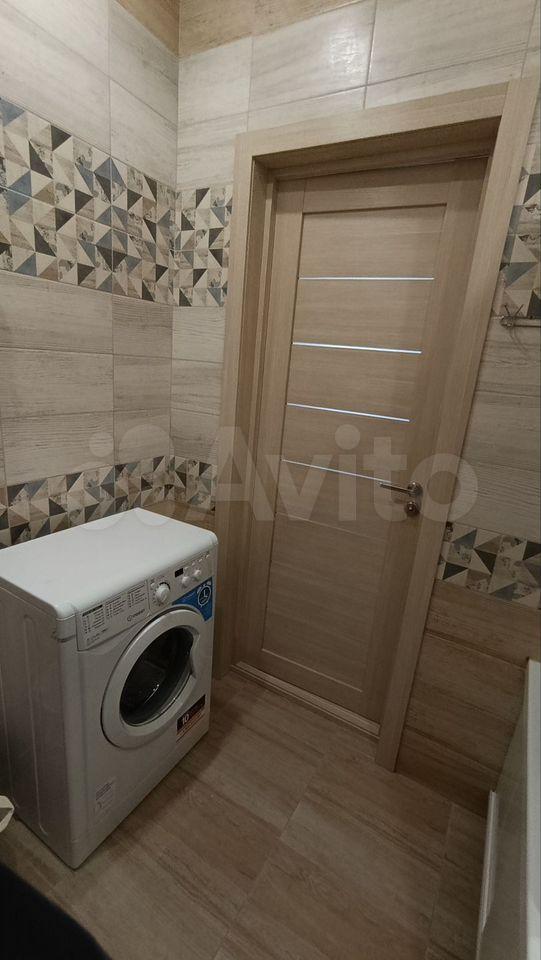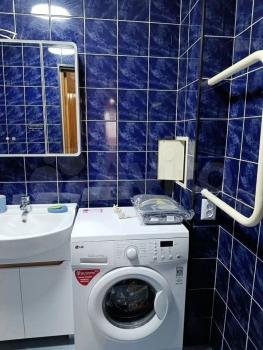 В квартире имеется вся необходимая мебель: шкафы и обеденный стол. Из бытовой техники — холодильник и стиральная машина. Санузел раздельный, выполнен в современном стиле.