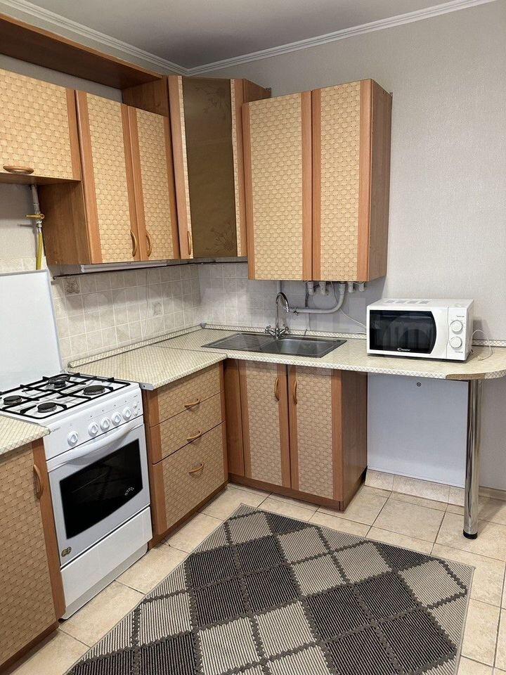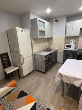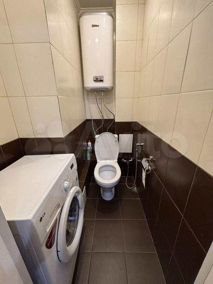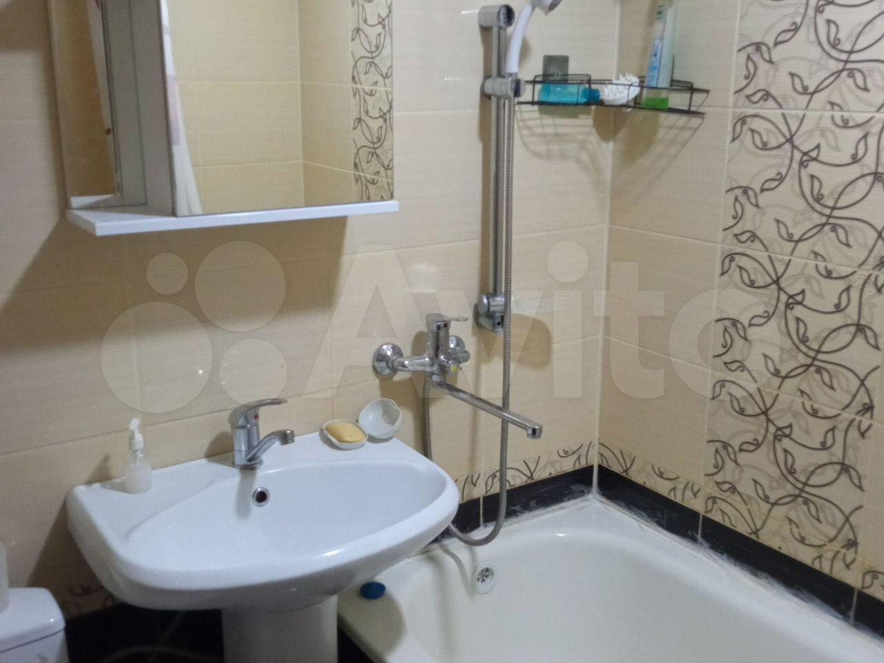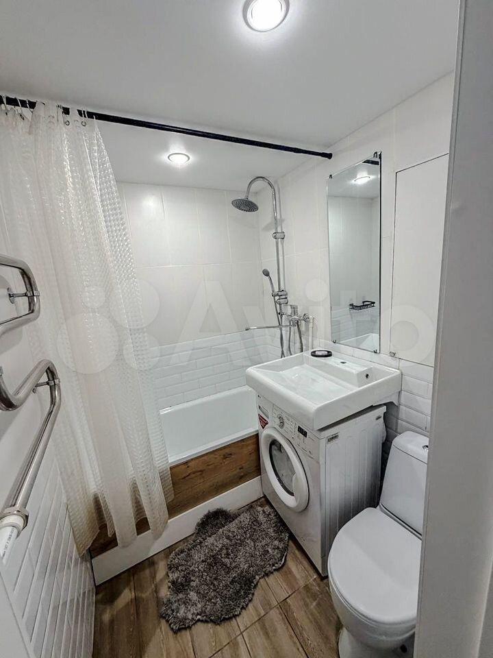 Кухня площадью 6 м² оборудована необходимой бытовой техникой, включая плиту и холодильник.Из мебели есть шкаф и 2 дивана.Ванная комната совмещенная, оснащена всем необходимым.стиральная машина. Только на длительный срок