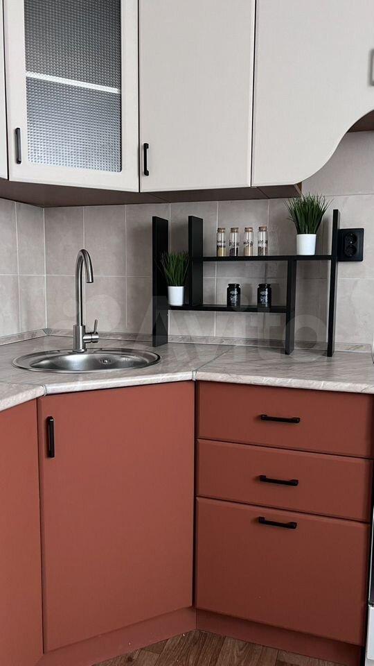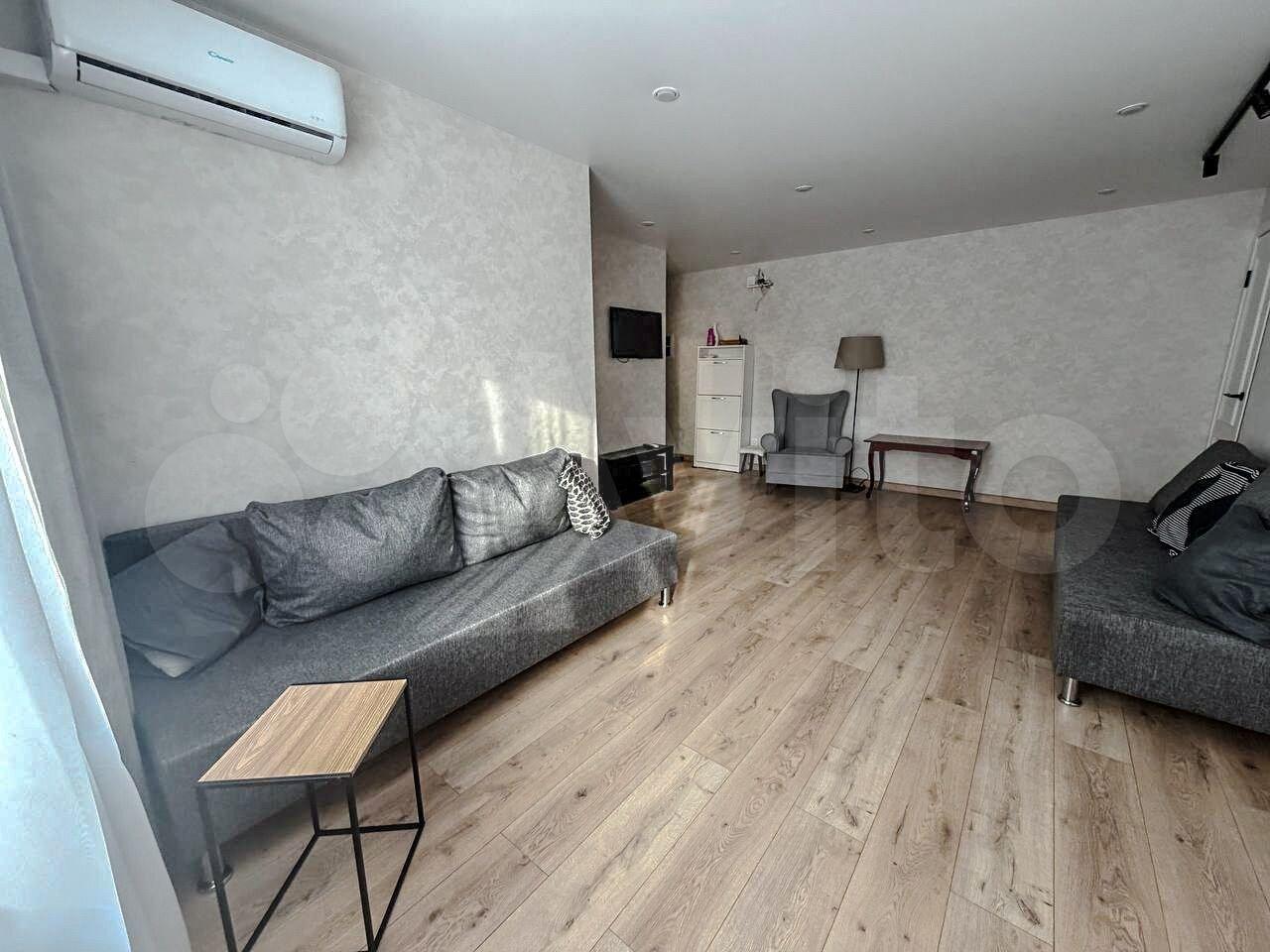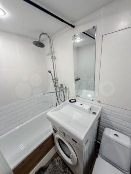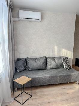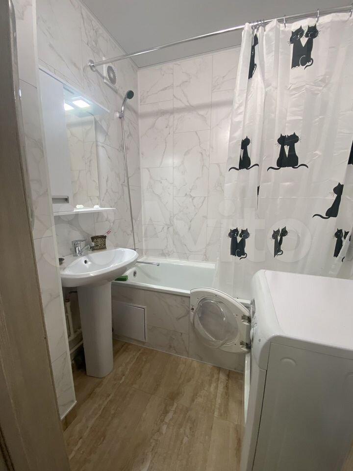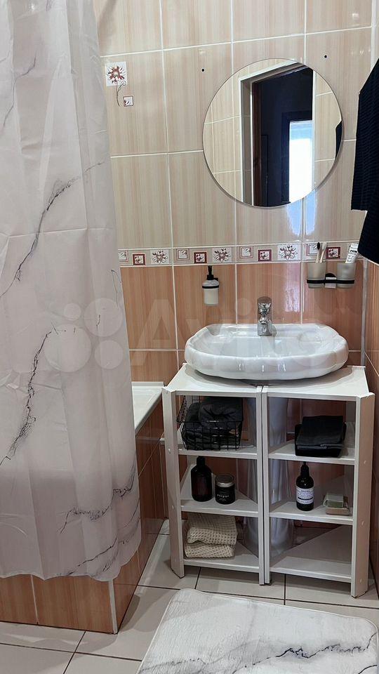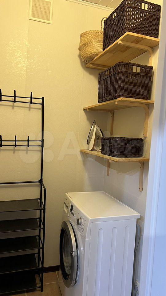 Кухня площадью 6 м² оборудована необходимой бытовой техникой, включая плиту и холодильник.Из мебели есть шкаф и 2 дивана.Ванная комната совмещенная, оснащена всем необходимым.стиральная машина. Только на длительный срок