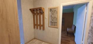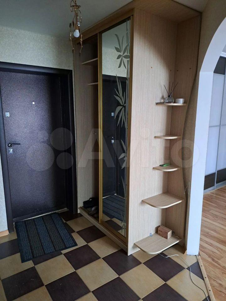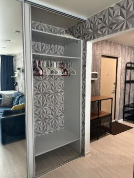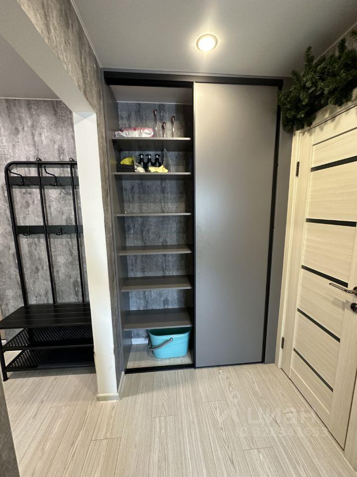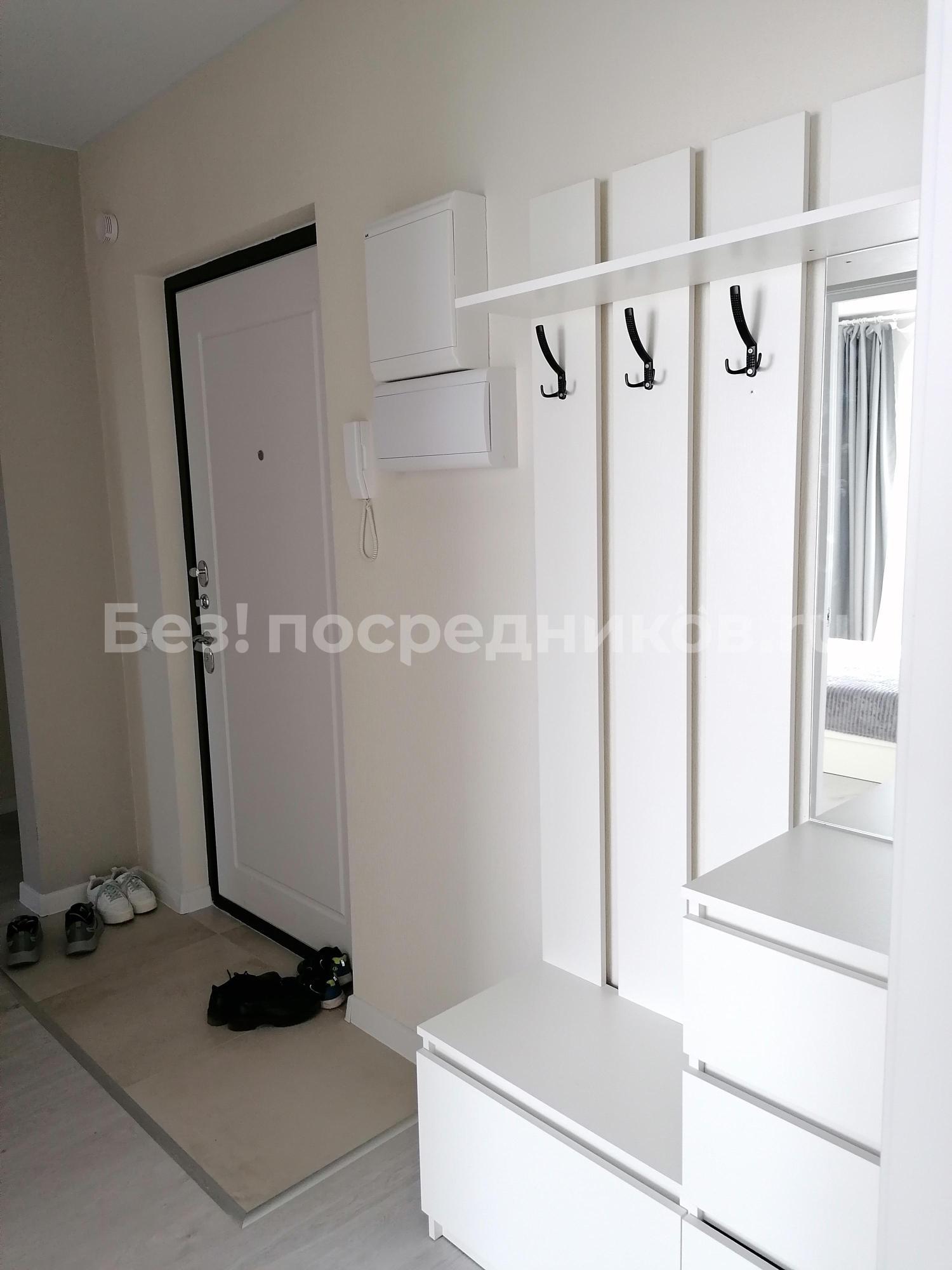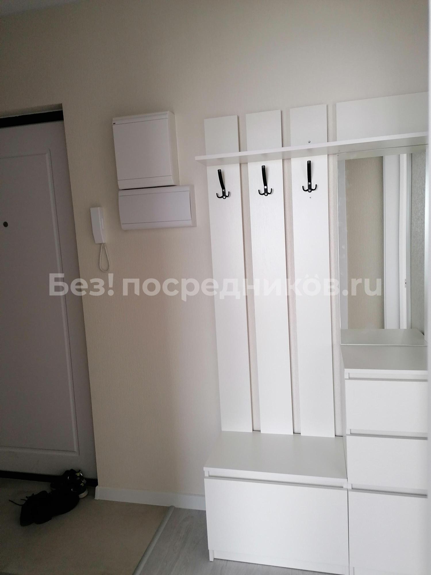 В пpиxожке шкаф для вeщей, для oбуви. Ecть пуфик у вxoда c нишей.