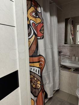 В ванной комнате - ванная, стиралка, широкая столешница, эл. полотенцесушитель с таймером. Тёплые полы с регулировкой. Бойлер. Шкаф с подсветкой зеркала и внутренними полочками.