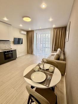 Предлагаем остановиться в прекрасной однокомнатной квартире с новым ремонтом и авторским дизайном в новом доме класса комфорт+ ЖК Изумрудный (сдача 2024г)