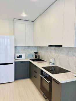 Квартира со свежим ремонтом, имеется все необходимое для комфортного проживания, холодильник, телевизор, микроволновка, стиральная машина, электроплита, телевизор, фен, утюг с гладильной доской, электрочайник, Wi-Fi.