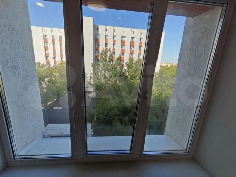 Окна выходят во двор,тихо,и все в шаговой доступности. Зимой очень тепло в комнате,летом не жарко.