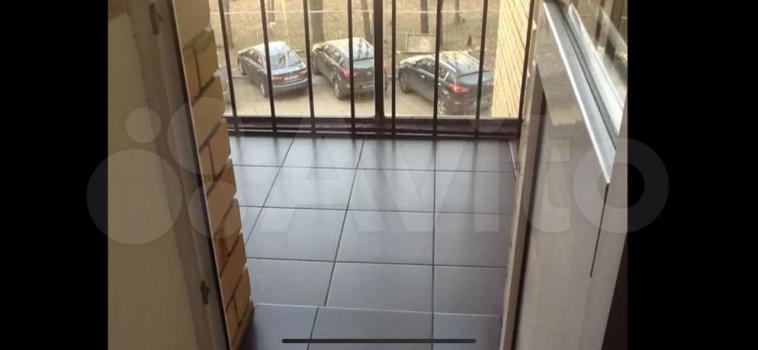 На балконе на полу ковролин, выведена розетка, сделан реечный потолок, в углу угловой шкаф-солдатик.