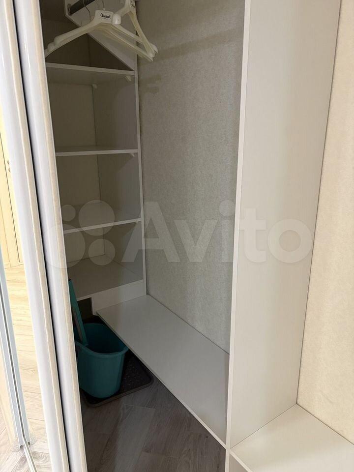 Cовмeщенный cанузeл выполнен в современном стиле с качественной сантехникой. В коридоре просторная гардеробная. В комнате 2х спальная кровать и рабочая зона.