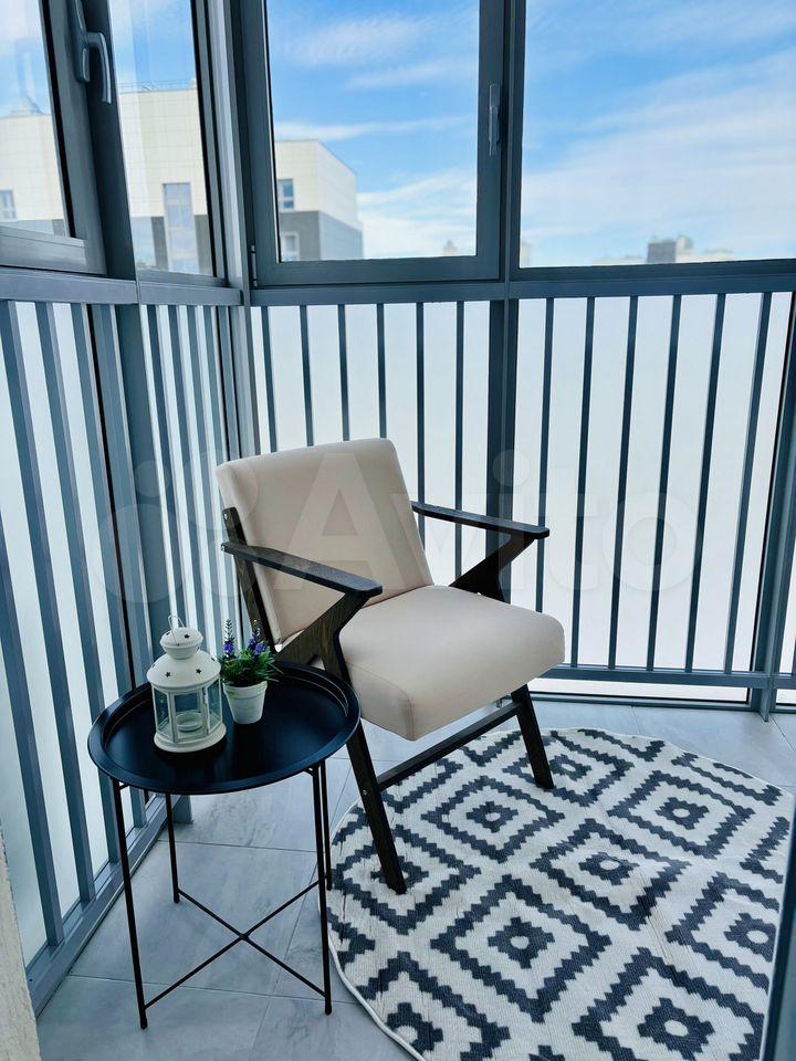 Кухня оборудована всем необходимым: плита, микроволновая печь и обеденный стол с стульями. Просторная лоджия станет отличным местом для отдыха.