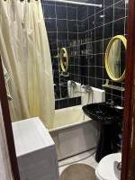 В комнате установлен вместительный шкаф и двуспальная кровать . Санузел совмещенный, выполнен в современном стиле с качественной отделкой.