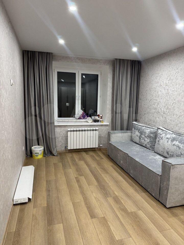 В квартире сделан современный ремонт. Полы: ламинат. Окна: пластиковые. Потолки: натяжные. Сан. узел в кафеле. Есть просторный балкон.