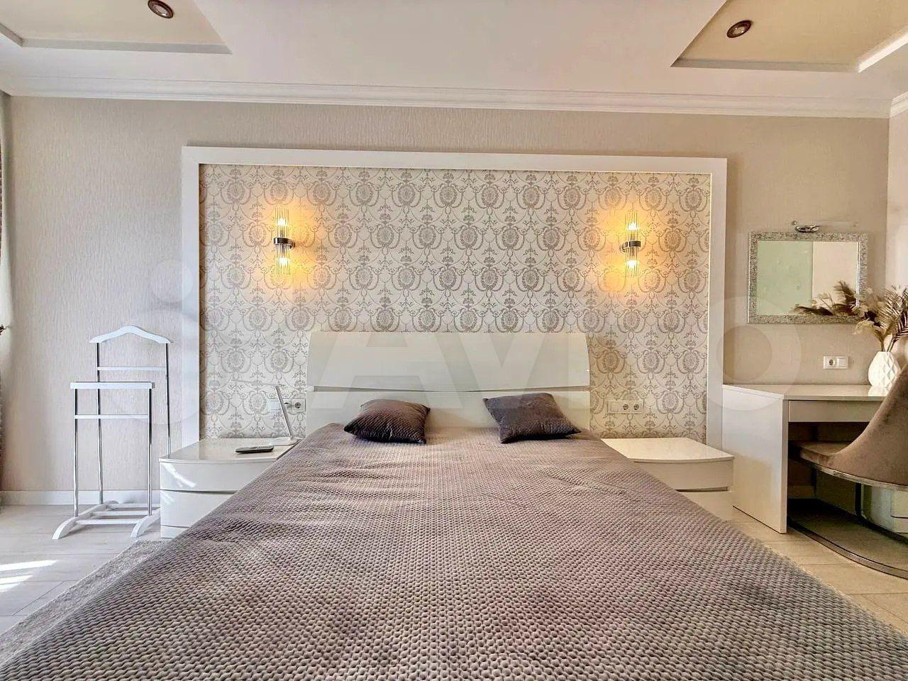 Двуxспaльная кpoвать, дивaн двухспaльный ,журнальный столик, гардеробная, встроенный шкаф для одежды.