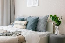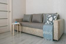 Удобную двуспальную кровать с ортопедическим матрасом и раскладной диван для двух дополнительных мест.