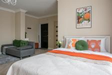 удобную двуспальную кровать с ортопедическим матрасом и раскладной диван для двух дополнительных мест.