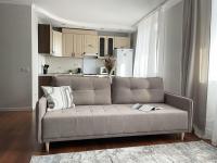 Наша уютная и просторная 1-комнатная квартира, с дизайнерским ремонтом, включающую в себя все необходимое для комфортного и беззаботного проживания — это идеальное место как для отдыха, так и для работы.