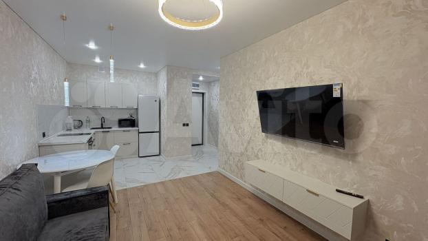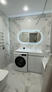 Квартира с новым дизайнерским ремонтом. В ней есть вся необходимая новая мебель и техника (холодильник, микроволновая печь, чайник, стиральная машина, телевизор). Есть отдельная гардеробная.