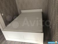 В спальной кровать, шкаф-купе, телевизор, шторы блэкаут....