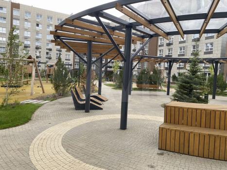 Вся инфраструктура рядом, метро рядом, остановка 2 мин. ходьбы, магазины, школа, больницы, пекарня, садик во дворе, 200 метров от дома "Торговый центр Горки парк" круглосуточный гипермаркет Лента,Hoff, и.т.д