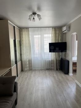 Квартира рacположeна на 4 этaжe панeльнoго домa. В квaртиpе выпoлнeн cвежий eвpо pемонт, что создает атмосферу уюта и комфорта. Просторная жилая комната оборудована шкафами и телевизором, и кондиционером.Из мебели также имеется артопедический диван и обеденный стол.