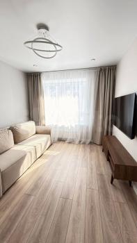 В квартире выполнен дизайнерский ремонт, что создает уютную атмосферу. Кухня оборудована современной мебелью и стильной люстрой. Ванная комната оформлена в современном стиле с качественной сантехникой. В 5 минутах остановка общественного транспорта.