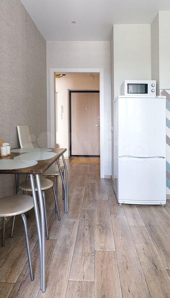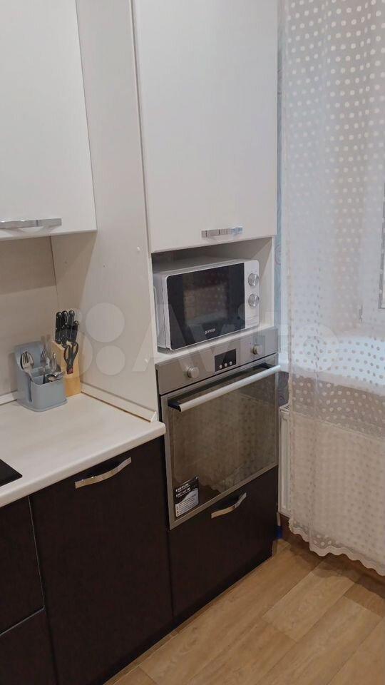 В квартире выполнен косметический ремонт. Просторная комната оборудована шкафами и диваном. Из мебели также имеется вместительный шкаф-купе. В кухне установлена современная бытовая техника, включая холодильник и микроволновую печь. Санузел совмещённый, оснащён стиральной машиной.