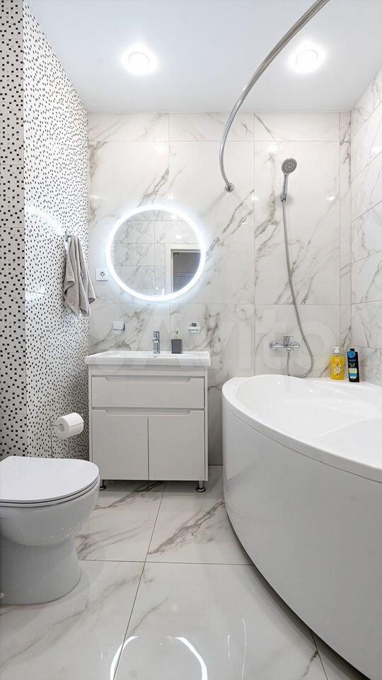 Санузел совмещенный, оформлен современной плиткой, оборудован ванной. В квартире есть кабельное/цифровое ТВ.
