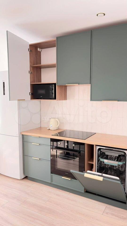 1.1 Гарнитур, плита, духовка, микроволновка, посудомоечная машина, холодильник, вся техника встроенная;