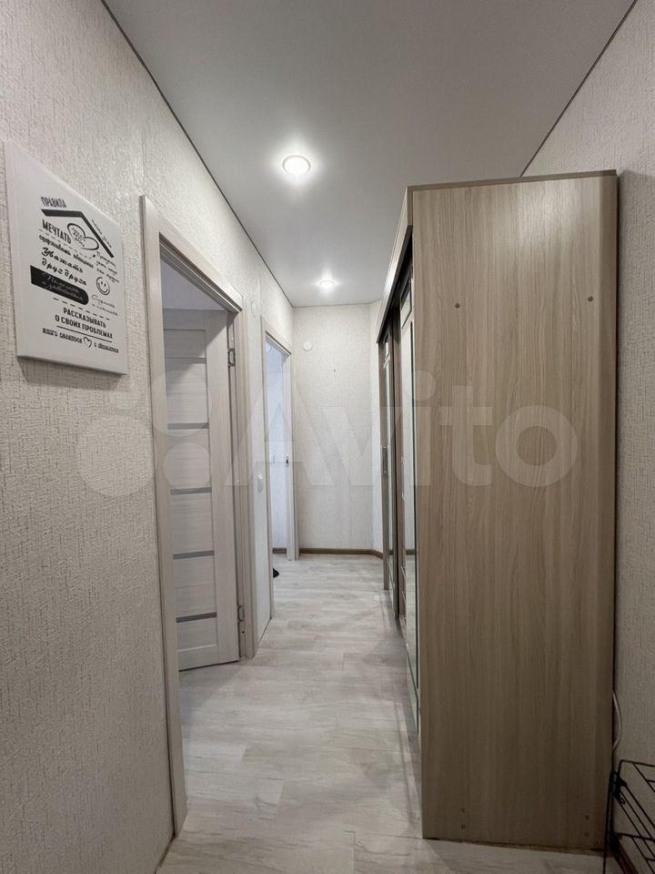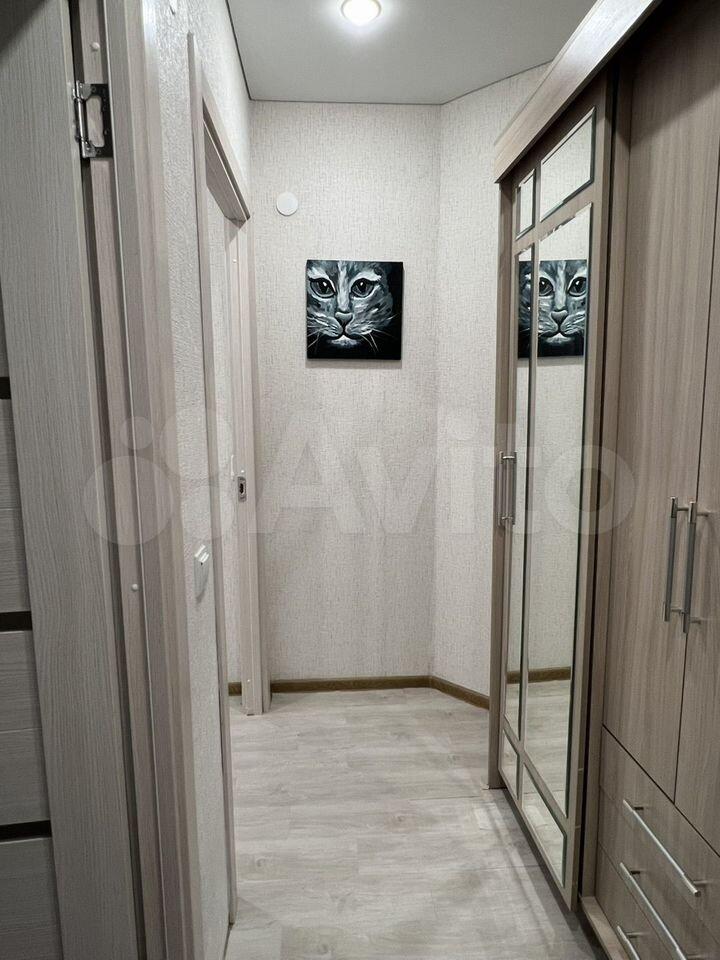 В квартире выполнен косметический ремонт. Просторная комната оборудована шкафами и диваном, что позволяет комфортно разместиться двум людям. Из мебели также имеется вместительный шкаф-купе.