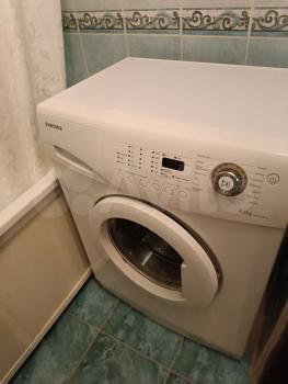 Кухня светлая и просторная, оснащена всем необходимым: холодильник, плита, микроволновая печь. Санузел раздельный, оформлен плиткой в которой размещена стиральная машина.