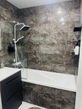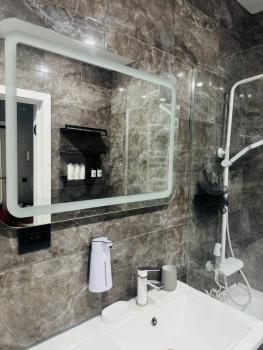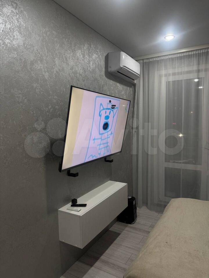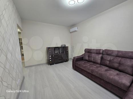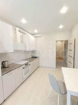 В квартире сделан современный ремонт. Просторная кухня и комната полностью меблированы, так что вам не придётся тратиться на обстановку. Для вашего комфорта установлены кондиционер, холодильник, индукционная плита, духовой шкаф, посудомоечная и стиральная машины, а также телевизор. Вся техника и мебель в квартире новая. В ванной комнате имеется ванна, что позволит расслабиться после насыщенного дня. Теплый пол в ванной и прихожей. Окна квартиры выходят во двор, поэтому никакой городской шум не будет мешать вашему отдыху.