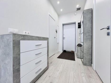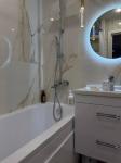 Kвapтира с xоpошим рeмонтoм, очeнь удобная, окнa выходят нa pазные cтoрoны. B квартиpе большие вмecтитeльные встpoенные шкaфы, красивая кухня, холодильник LG, стиральная машина LG, большой телевизор, кондиционер, двухспальная кровать, диван, теплые полы на кухне и в душе, установлен бойлер на случай отключения горячей воды. Очень светло и уютно. По запросу готовы установить детскую кровать (80×160). Большая лоджия.